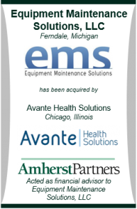 Equipment Maintenance Solutions, LLC (EMS), has partnered with Avante Health Solutions, a portfolio company of Jordan Industries. Based in Ferndale, Michigan, EMS provides MRI and CT field-based maintenance and repair services, equipment sales, parts and rentals.
